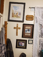 Our cousin came over to see my progress and as she looked at my kitchen walls she commented, "your shelves are crooked." I smiled and replied, "I know, that's because I'm a bit off." But above my crooked shelves I hung a metal piece that states "Thankful, Grateful and Truly Blessed." A constant reminder that I am all three.